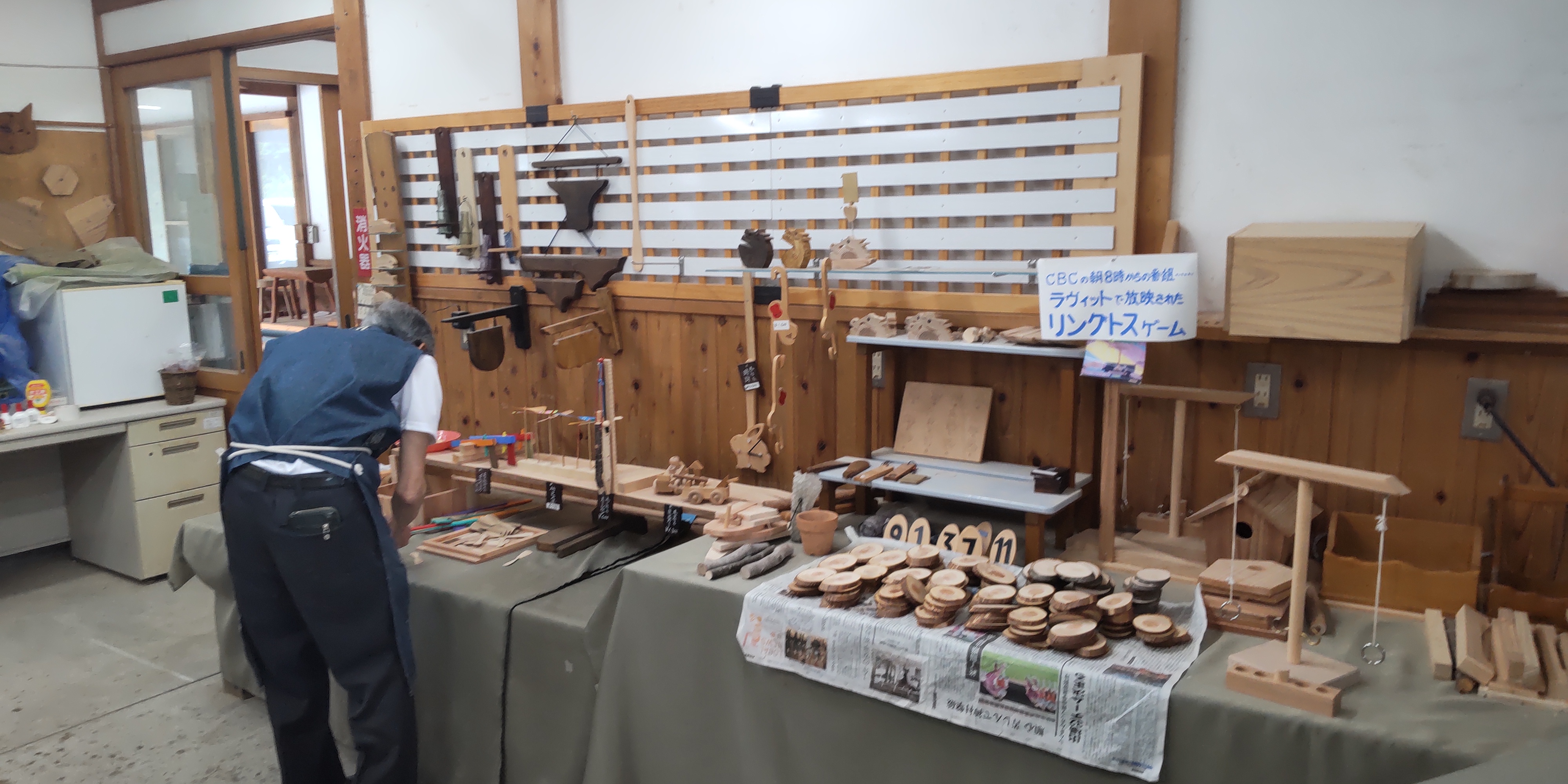 こちらの道の駅の特徴はとにかく敷地が広い!食堂や産地直売所のある味彩館から奥の広場に足を延ばすと大きな芝生広場があります。広場を囲むように木工体験のできる「とんちん館」、五平もちやお味噌を仕込む「勇気工房」、動物とのふれあい広場があります。