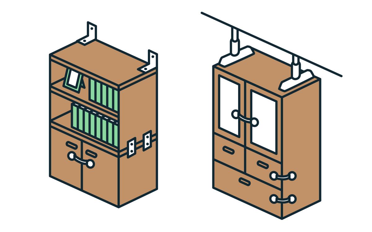 本棚の転倒を防ぐためには、突っ張り棒タイプの固定具やジェルマットなどを利用してしっかり固定しましょう。また、本棚の上段には軽い本を、下段には重い本を収納することで、重心が安定して安全性が高まります。