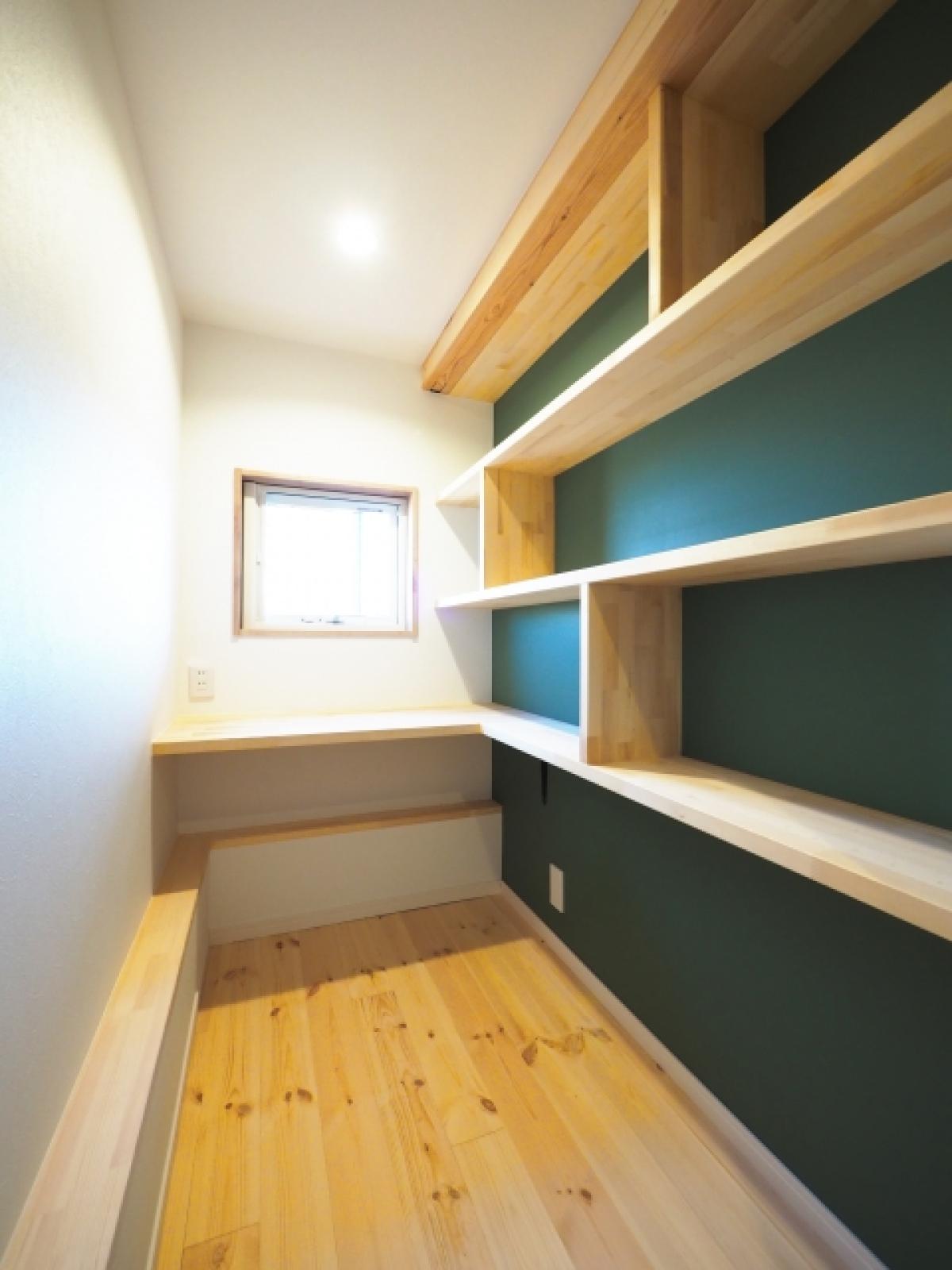 収納の中に机付きのワークスペースを置けるように設計することでコンパクトな書斎を設置できます。扉を外してオープンにしたり、デスクを折りたたみにすることで圧迫感をの無いエクストラルームになります。
