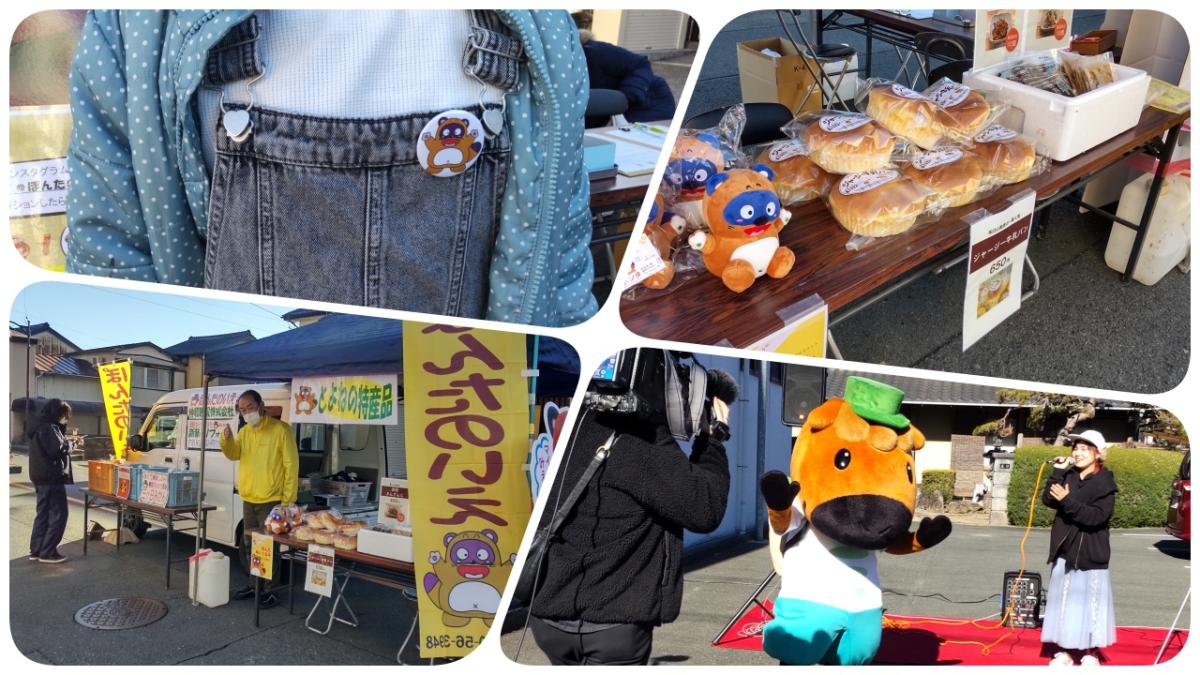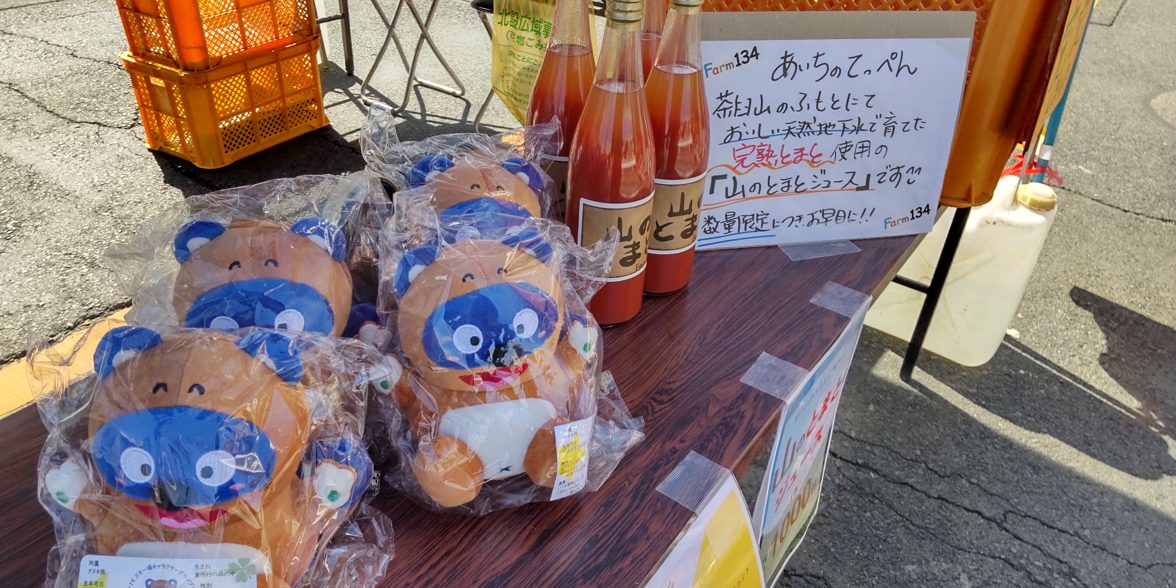 商品は金山寺漬、大きな大きな牛乳パン、ぽんたのぬいぐるみ。