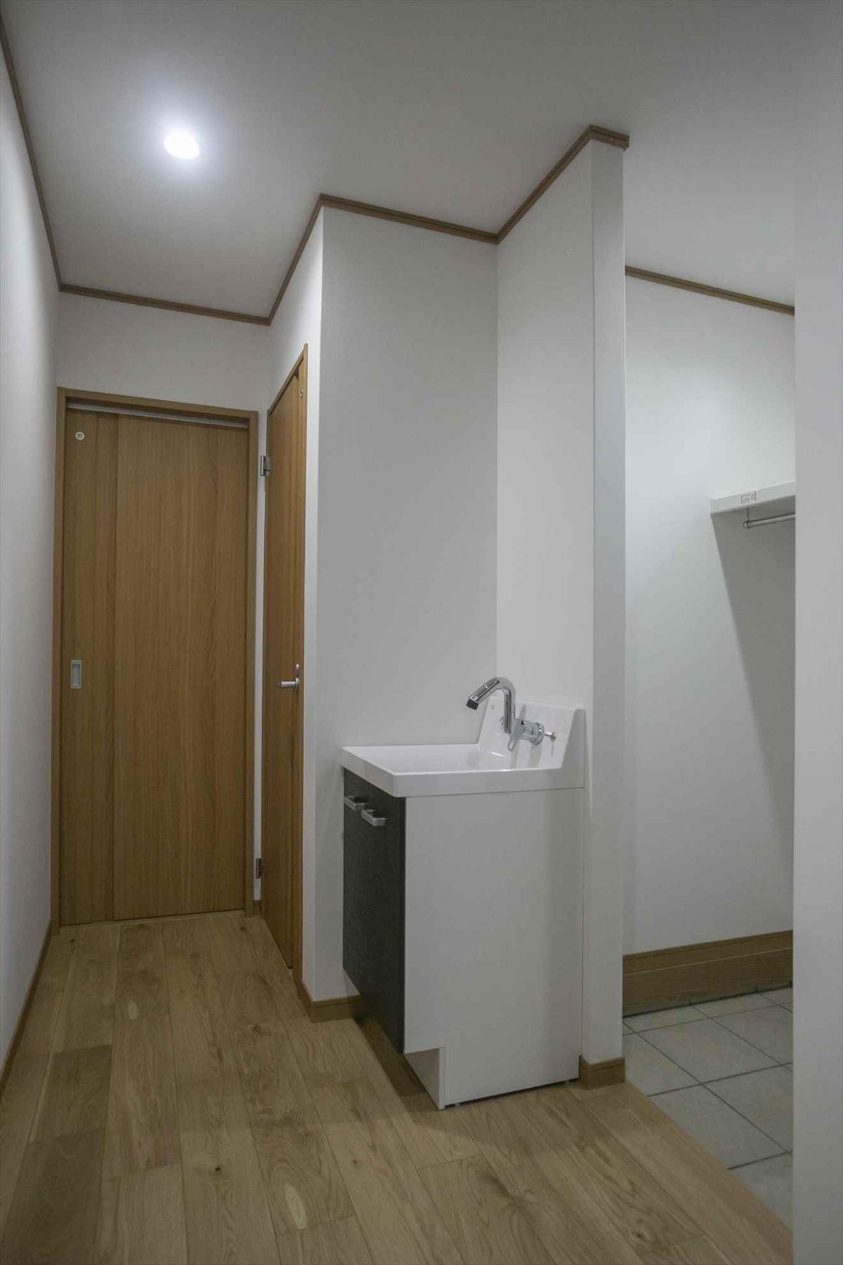 帰宅してすぐに手が洗えるように玄関横に手洗い器を設置しています