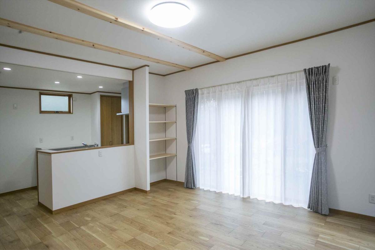 天井を少し高くして、木を見せることで落ち着いた雰囲気になっています。