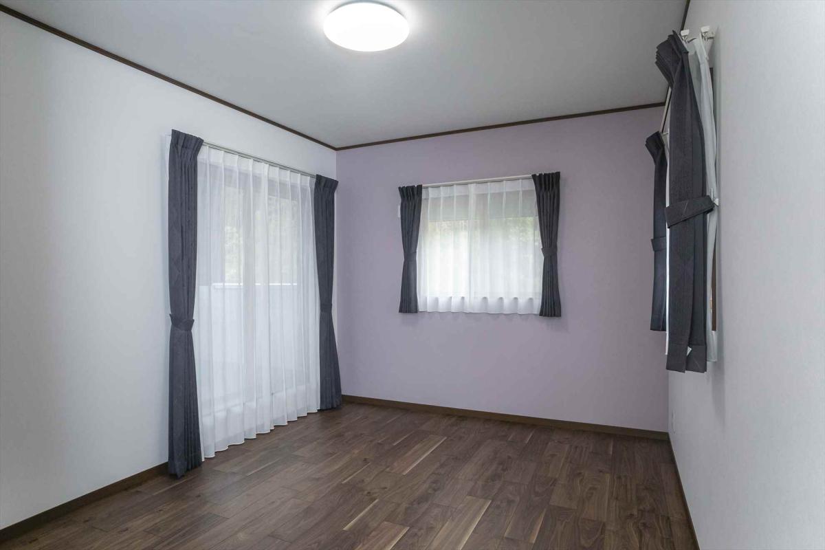 寝室:落ち着いたパープルの壁紙を使っています