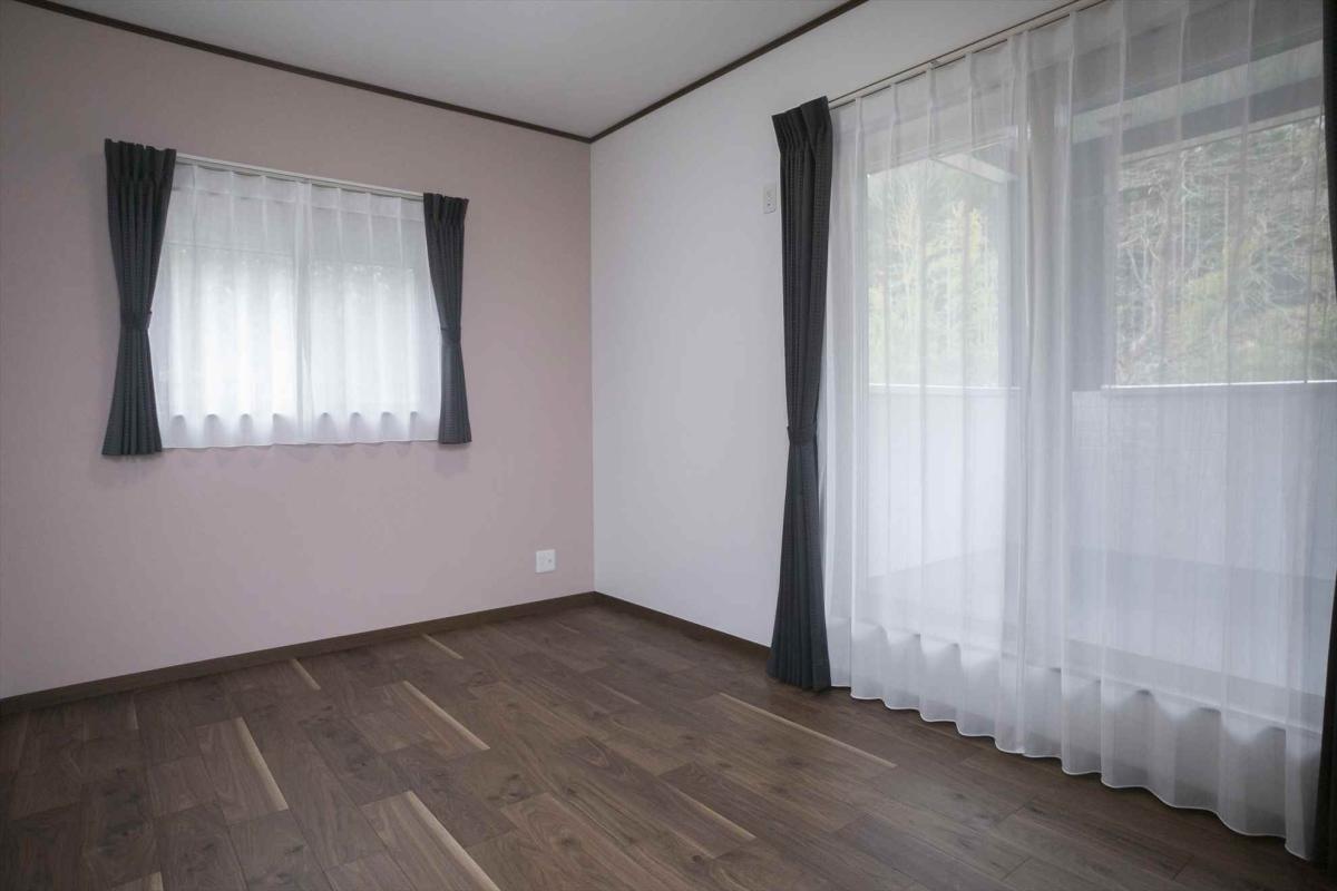 子供部屋:ピンクの壁紙でかわいらしく