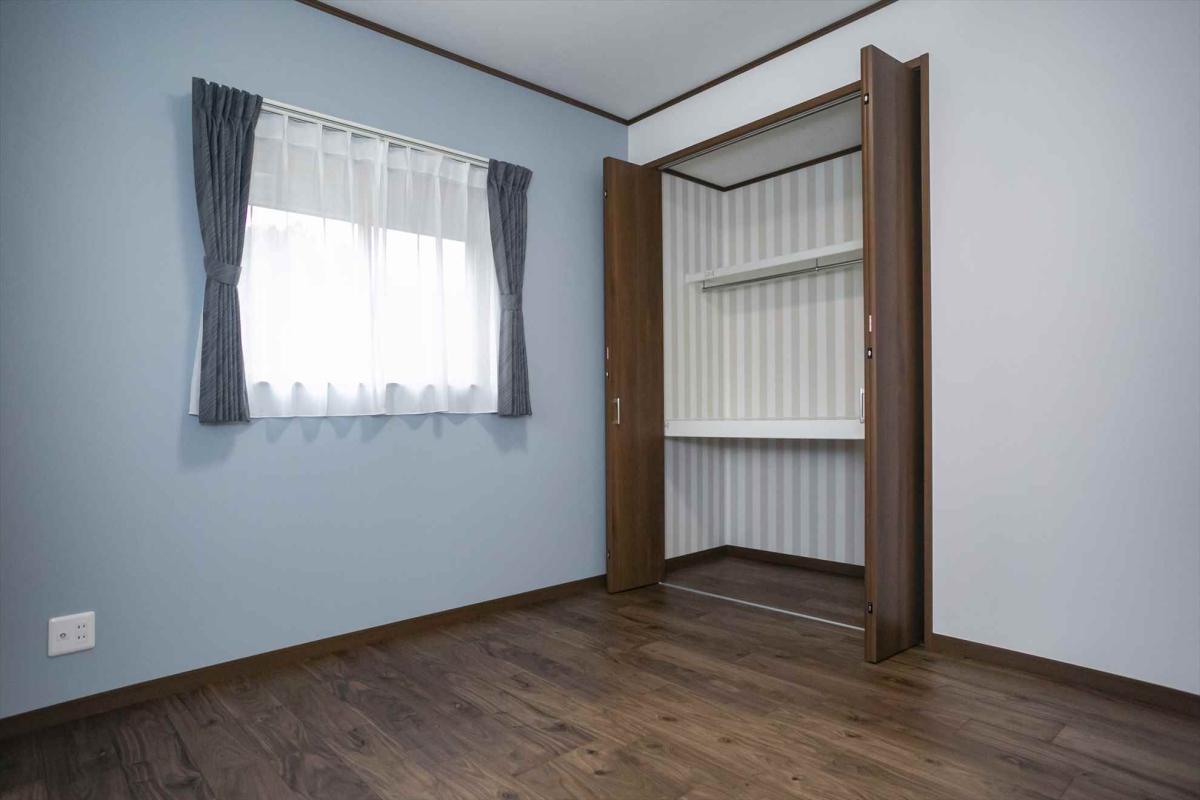 クローゼットの中もアクセント壁紙を使っています