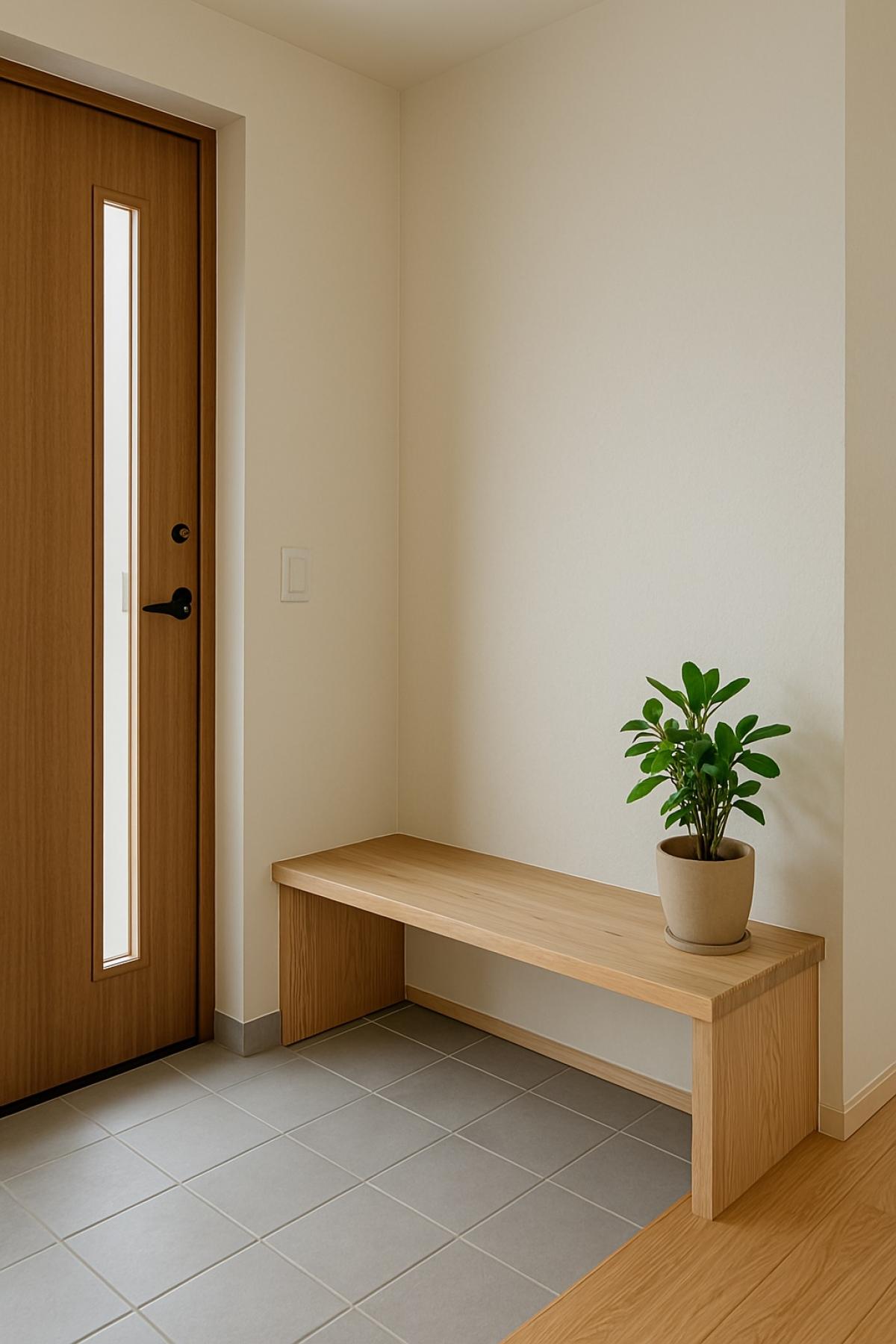 靴の脱ぎ履きはもちろん、荷物を一時的に置いたり、外出前に少し座って身支度を整えることに使います。お客様とのちょっとした会話にも役立つ、気軽に使える場所です。