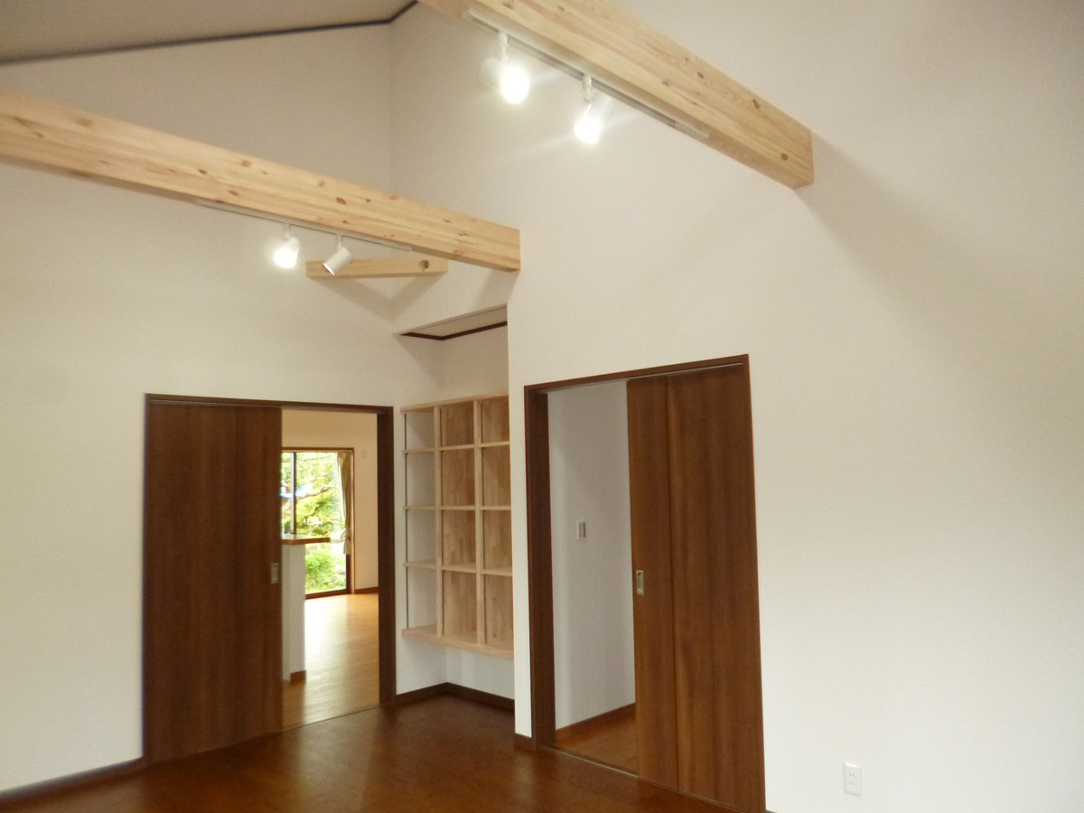 寝室や洋室などの居室も同様です。最近では多くの方が居室をできるだけ小さくし、リビングに家族が集まるような設計を要望されます。ということは、部屋の広さは最低限の広さになるということです。居室にはクローゼットを設置しますが、カバンやランドセルを置く場所、教科書や漫画本を収納する棚、勉強やワークスペースとして活用できる折りたたみ式のカウンターなどを後から設置するとなると、最低限の広さで建築してしまった場合、設置が難しくなります。